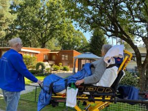 “ ‘s Morgens om 10.00 uur waren we in het ziekenhuis om een wensvrager op te halen en naar haar huis in Wassenaar te brengen. Mevrouw wilde nog graag even naar de Camping ‘De Wijde Blik‘ in Garderen. De familie heeft daar een eigen chalet en zij komen daar al ruim 20 jaa, zo’n 7 maanden per jaar. Mevrouw wilde nog afscheid nemen van een aantal mensen die er ook al jaren komen en nog even bij hun chalet kijken. We hebben nog even koffie gedronken en daarna hebben we mevrouw naar haar huis in Wassenaar gebracht waar de familie mevrouw al opwachtte.”