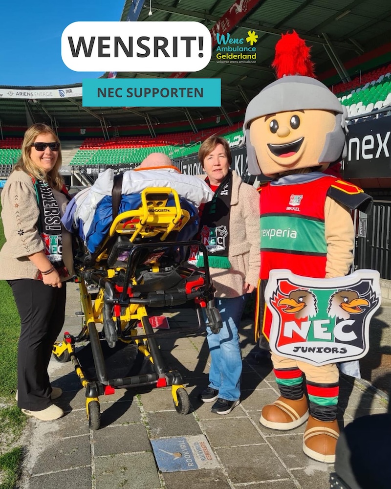 Alle lof aan @necnijmegen en @wensambulancegelderland ! Zonder jullie was Karel zijn laatste wens nooit in vervulling gegaan! Veel dank daarvoor!’