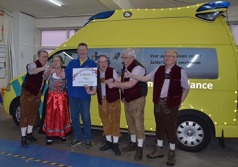 Het kleine, maar gezellige zanggroepje Alléén Hollands uit Apeldoorn had de Veluwse Wens Ambulance gekozen als Goede Doel 2022. Met een cheque van 500 euro dragen zij en hun publiek de Veluwse Wens Ambulance een warm hart toe. Het gezelschap reisde naar Elburg af om de cheque te overhandigen.