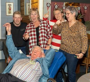 De kleinzoon vierde zijn verjaardag een klein stukje rijden van de boerderij van meneer. Die wist ook niet dat zijn opa op zijn verjaardag zou komen. Een super verrassing voor beiden, want meneer wist ook niet aan het begin van de avond dat wij langs zouden komen om hem mee te nemen.