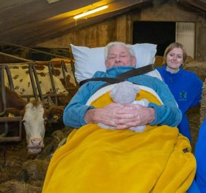 “Op 29 december 2023 mocht ik mee als fotograaf naar een speciale wens van meneer. Zijn dochter had de Veluwse Wens Ambulance gevraagd om als verrassing voor haar vader nog een keer naar zijn “meisjes” te mogen gaan op de boerderij. Er kwam nog een verrassing bij voor hem, een bezoek aan zijn kleinzoon, die elkaar bijna elke dag zien, bij meneer op de boerderij.