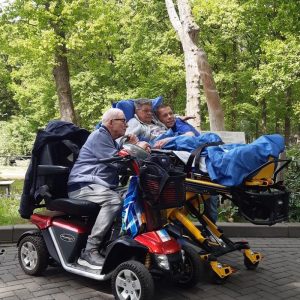 Eenmaal aangekomen stond de zoon en een huisvriend ons al op te wachten. De huisvriend zou foto’s maken om later een boekje te kunnen maken als herinnering voor het echtpaar. De zoon had al een een scootmobiel gehuurd voor zijn vader.