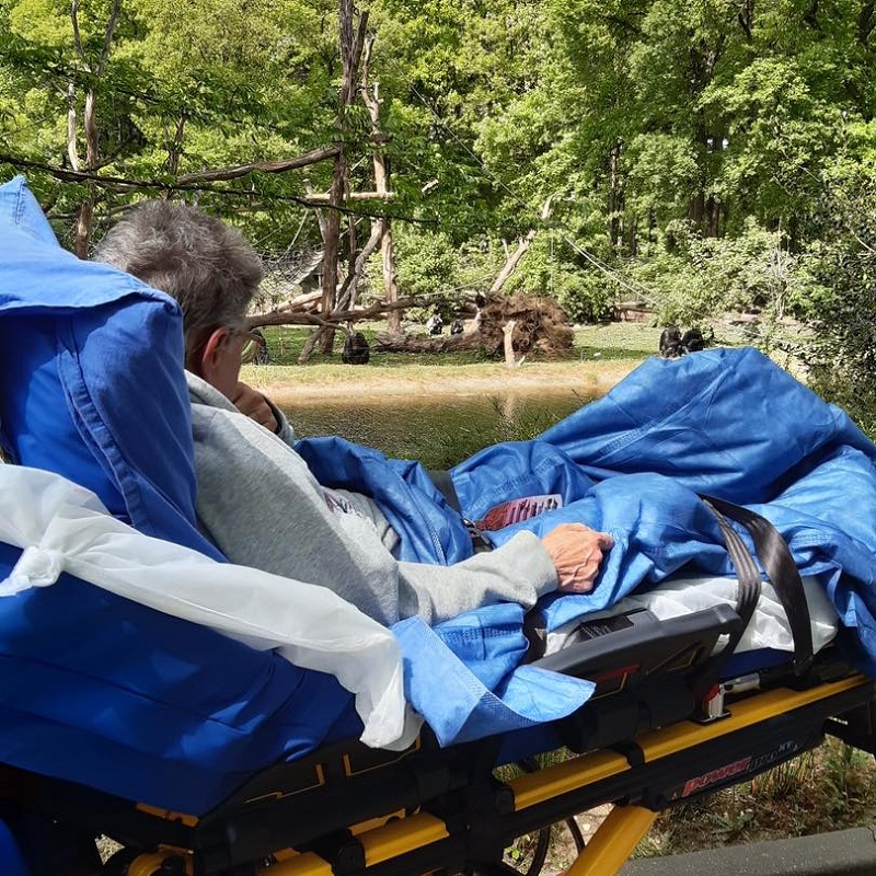 Mevrouw heeft een korte levensverwachting en wilde super graag nog een keer naar Burgers Zoo om alle dieren te zien. Wat mooi dat wij dit dan voor haar haar kunnen en mogen doen met onze wensambulance. Na een korte kennismaking met het echtpaar en de overdracht van de verpleegkundige reden wij mevrouw in de ambulance. Haar man stapte ook in en zo konden wij onze reis naar de dierentuin beginnen. Mevrouw lag heerlijk en genoot van het naar buiten kijken en het mooie weer dat ons begeleidde.