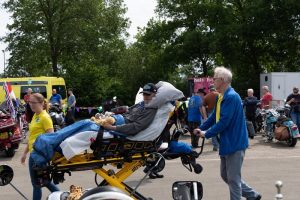 “Op zondag 5 juni 2022 was er vanuit onze collega’s van wensambulance Oost-Nederland het evenement ‘Rijden voor geluk’. We hebben meneer opgehaald in Zeewolde en zijn naar Haaksbergen gereden. Onderweg was meneer al vol lof over hoe bijzonder hij het ervaarde dat hij met ons mee mocht op deze dag. Eenmaal aangekomen in Haaksbergen begonnen we met een kopje koffie en hebben we de motoren, bikes en trikes bewonderd die opgesteld stonden om mee te rijden, samen met in totaal 8 wensambulances uit diverse regio’s.