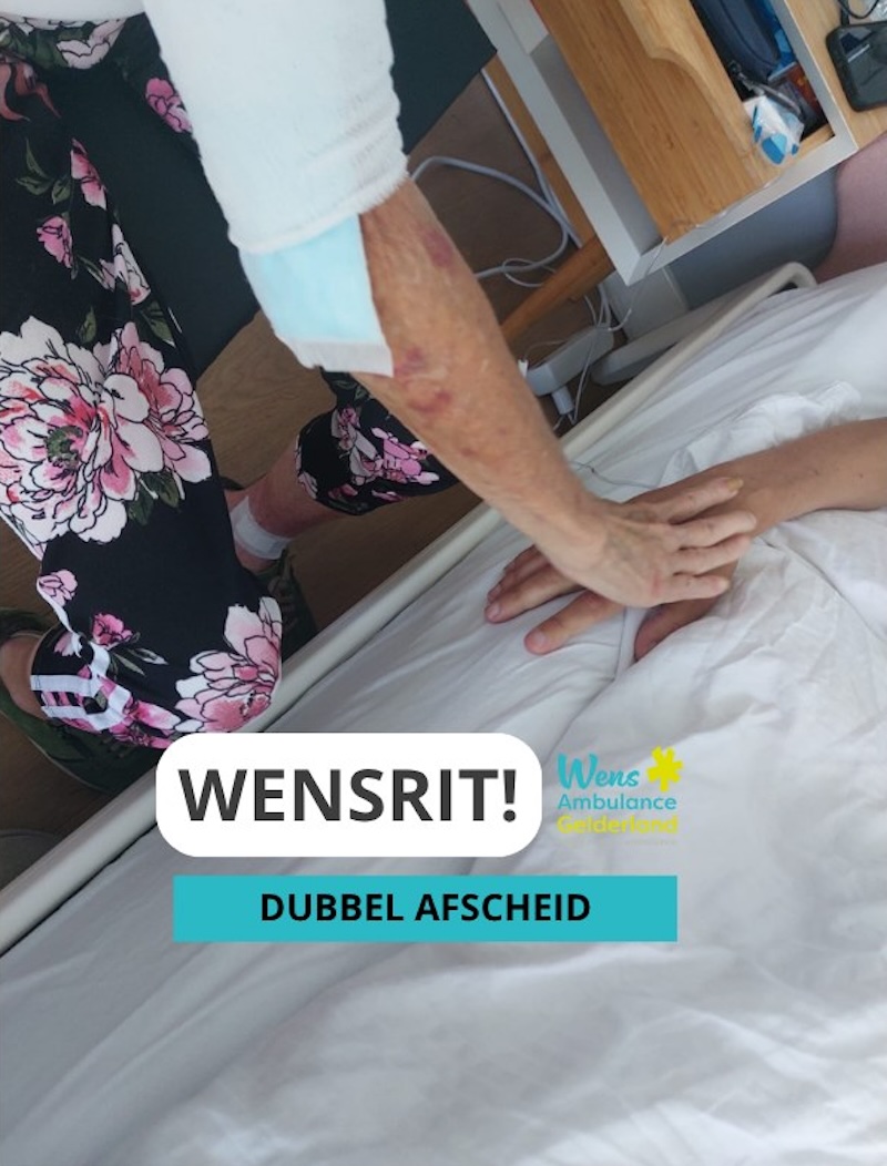 Ik ben de vrijwilligers van de Wensambulance intens dankbaar dat zij dit laatste samenzijn mogelijk hebben gemaakt. Hoe verdrietig het afscheid van twee dierbaren ook was, dit moment van verbondenheid maakte het draaglijker. Blijf alsjeblieft doorgaan met jullie bijzondere werk ♥️