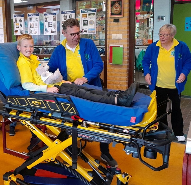 Joël, leerling van basisschool De Morgenster in Nunspeet, hield zijn spreekbeurt over de Veluwse Wens Ambulance. Hij had dit onderwerp gekozen omdat zijn buurvrouw vrijwilligerswerk doet bij deze stichting. De spreekbeurt had hij super voorbereid. Zo had hij de wensambulance ook geregeld en dat hij op de brancard het klaslokaal werd binnengebracht. Joël kreeg een welverdiende 9.5 voor zijn spreekbeurt. Tot slot mochten alle kinderen nog even in de ambulance kijken.