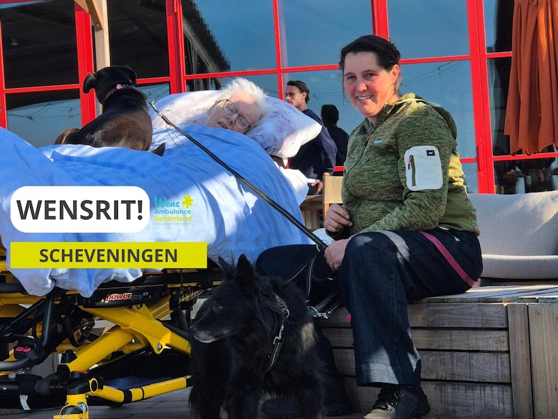 Ze had de wens om nog een keer op het strand van Scheveningen een haring te eten. Ze heeft hier vroeger gewoond en gewerkt en natuurlijk mochten haar hondjes niet ontbreken bij deze bijzondere dag. Zo hebben we samen met de familie en René en Wieneke van de wensambulance, de bewoonster een fantastische dag bezorgd! Ze heeft ervan genoten en mevrouw praat er elke dag over.