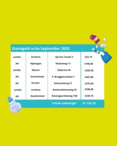 Ook in de maand september hebben wij een prachtig bedrag mogen ontvangen van de emballage-acties, maar liefst β‚¬πŸ.πŸ•πŸπŸ”,πŸπŸ“!