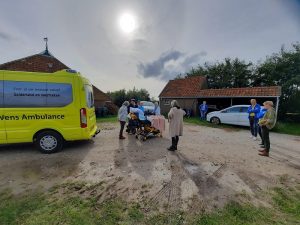 “Op maandag 3 oktober staat de Veluwse Wens Ambulance al vroeg klaar voor onze ernstig zieke zus, vriendin en tante. Haar wens om nog eenmaal naar het eiland Terschelling te gaan, wordt die dag op grandioze wijze waargemaakt. In Harlingen worden we hartelijk ontvangen door de mensen van Rederij Doeksen. De chauffeur parkeert de ambulance op het autodek van ‘De Friesland’ en tante rijden we op de brancard de boot op naar een mooie plek voor het raam. Over een spiegelgladde Waddenzee varen we naar het zonnige Terschelling. De lieve mensen van de wensambulance houden alles piekfijn in de gaten en blijken een gezellige aanvulling op ons tienkoppige gezelschap.