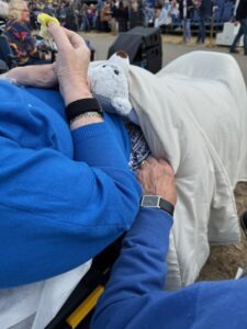 Na maanden niet meer buiten te zijn geweest heeft de organisatie van het fruitcorso op 27 september gezorgd voor een mooie plaats voor haar en haar man.