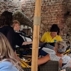 Dit was alleen mogelijk doordat ze op de brancard kon liggen en zo naar de binnenplaats van het kasteel gereden kon worden want inmiddels nam haar energie steeds verder af en ze is dus maar even gebleven.