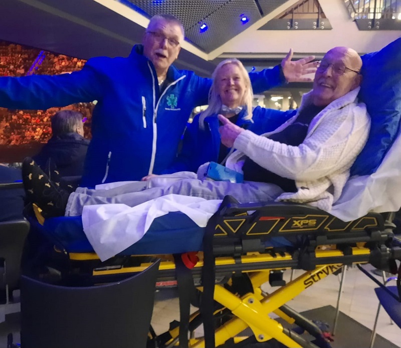 “Eerst heb ik van de HEMA Nunspeet slingers, lampjes, batterijen en strikjes gekregen om de ambulance in kerstsfeer te krijgen. Ook van Bakkerij van Dongen kreeg ik een amandelstaaf voor de wensvrager. Beide bedankt hiervoor! Met een mooie versierde wagen hebben we meneer en zijn familie opgehaald. De rit ging naar Rotterdam Ahoy naar het concert van DI-RECT! De sfeer onderweg zat er al goed in! Wat een lieve mensen!