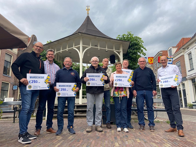 Frits Jautze heeft nu op 3 juli namens de Lionsclub Elburg-Oldebroek de waardecheques van 250 euro resp. 350 euro in Elburg uitgereikt aan vertegenwoordigers van de negen stichtingen en verenigingen. De ontvangen waardecheques werden zeer gewaardeerd en de bestemming daarvoor is ter ondersteuning van hun activiteiten.