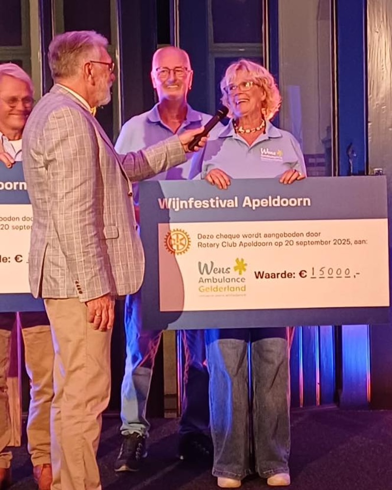 Gisterenanavond mochten wij een geweldige bedrag in ontvangst nemen, op het door Rotary Club Apeldoorn georganiseerde Wijnfestival. Wij willen Rotary Club Apeldoorn hartelijk bedanken voor deze fantastische actie. Dit bedrag zal bijdragen aan het vervullen van nog meer prachtige wensen.