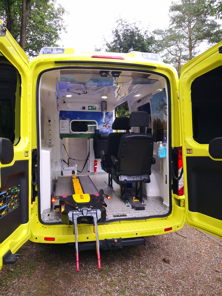 • Een elektrische brancard, waarmee de wensvrager comfortabel in en uit de ambulance gereden kan worden