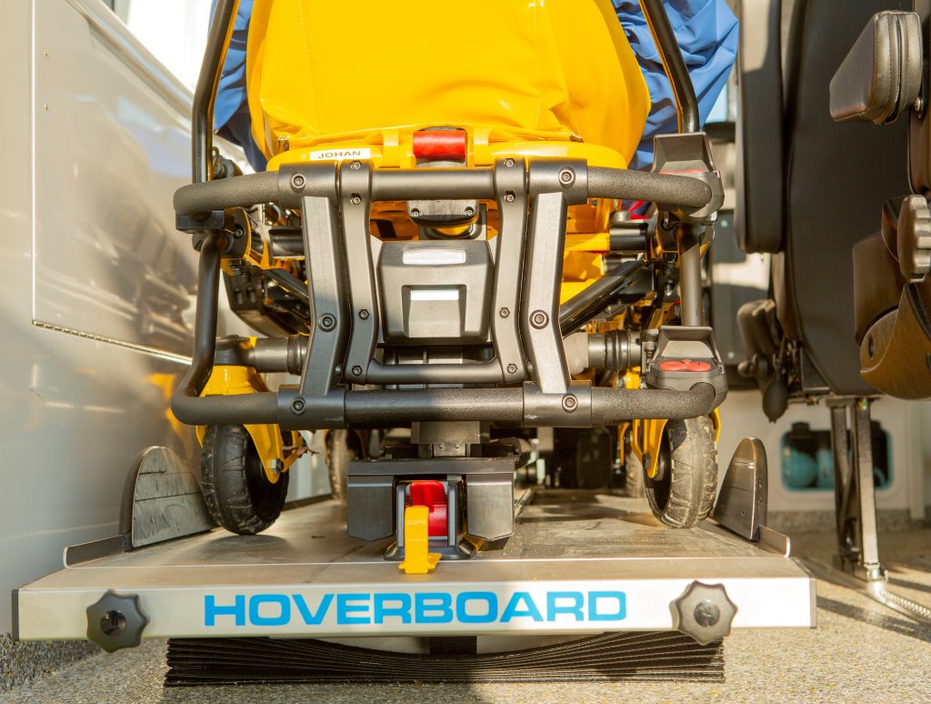 • Een hoverboard waar de brancard op bevestigd wordt. Dit is een veertafel die tijdens het rijden nog extra schokken kan opvangen.