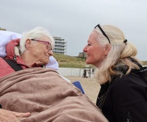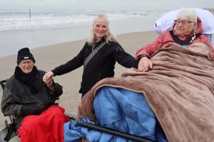 “Mijn moeder wilde graag nog een keertje naar de zee. Haar middelste kleindochter diende het verzoek in bij de wensambulance. Dezelfde dag belden ze al en werd er een datum gepland. Alle mensen die mijn moeder graag om haar heen wilde die dag hadden vrij geregeld en konden allemaal mee. We werden opgehaald door 3 lieve schatten van het wensambulanceteam. Vanaf het moment dat mijn moeder in de ambulance zat begon het genieten voor haar. Ook mijn vader en ik mochten mee met de ambulance. Dat was heel bijzonder. Het was een prachtige dag en mijn moeder heeft enorm genoten. Wij natuurlijk ook. Wat een mooie herinnering. Bedankt lieve vrijwilligers niks was voor jullie teveel. Wensambulance Gelderland wat verrichten jullie fantastisch werk.”