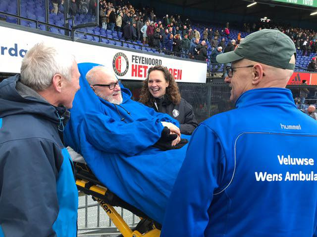 “Afgelopen zondag was een dag waar erg naar was uitgekeken door deze heer. Als enorme Feyenoord fan had hij nog 1 grote wens, een wedstrijd van zijn cluppie bijwonen. De wedstrijd Feyenoord-Ajax die gepland stond op 19 december werd helaas zonder publiek gespeeld. Dus deze kans om de wedstrijd Feyenoord-Sparta, een echte stadsderby mee te maken, nam hij met beide handen aan. Hoewel de regen met bakken uit de hemel kwam en er code geel was afgekondigd had mijnheer er heel veel zin in. Warm ingepakt werd hij om 10 uur opgehaald door de vrijwilligers.