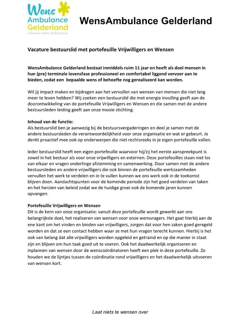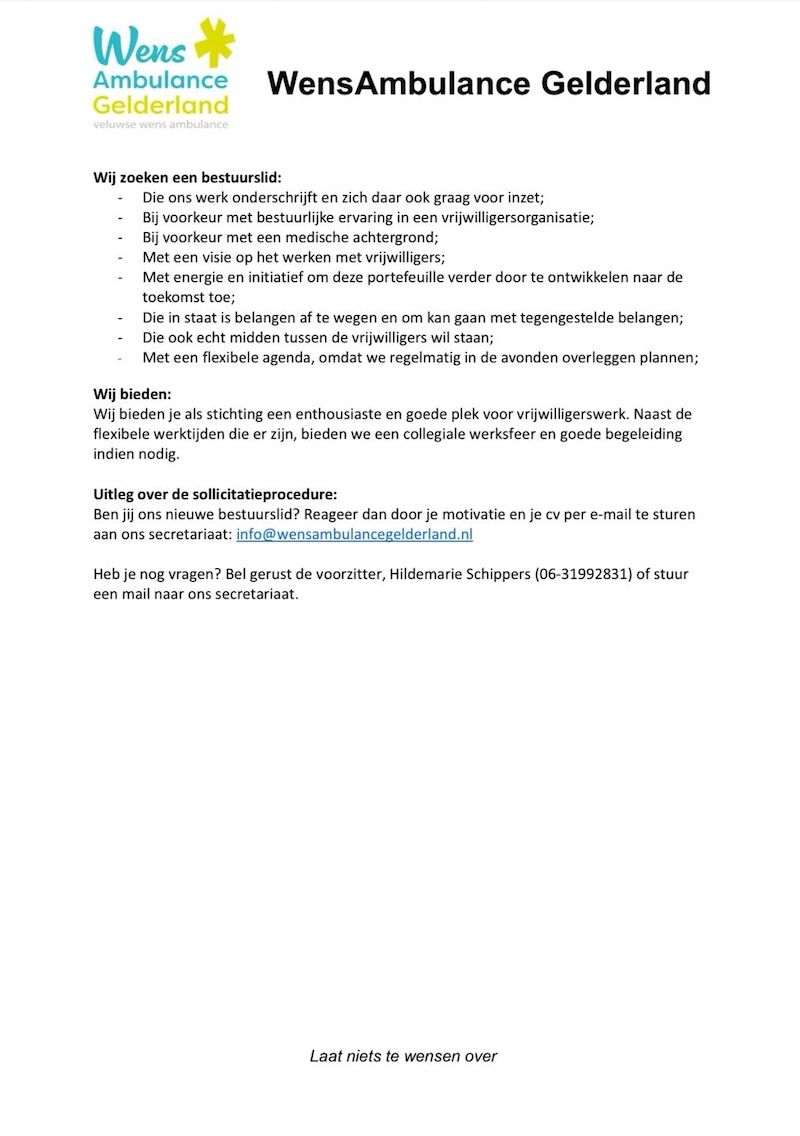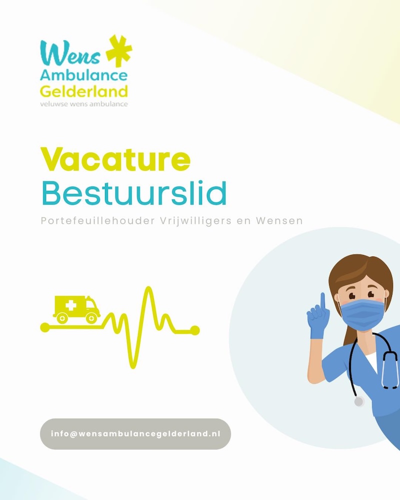 Je kunt jouw sollicitatie tot en met 31 december sturen naar info@wensambulancegelderland.nl.