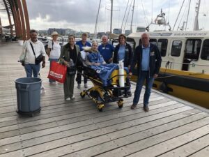 “Om 9 uur stonden we met onze wensambulance op de stoep in Zevenaar bij een mevrouw en haar familie. Haar wens was om een mooie dag met echtgenoot, dochter, zus en vader door te brengen. Haar keuze was erop uit te gaan met de Amsterdamse boot Stichting Vaarwens.
