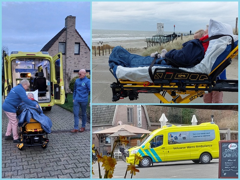 “Vrijdag 1 mrt jl. stond de Wensambulance voor de hospice in Wageningen. Vrijwilligers van de wensambulance hebben Wytske opgehaald voor ( haar wens) een dagje uit naar Schoorl. Hier heeft zij vroeger gewoond en er liggen dan ook veel goede herinneringen.