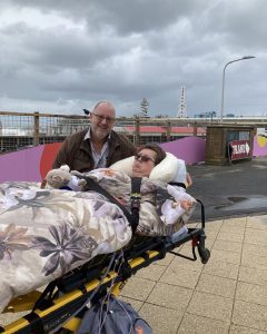 Wensrit van Petra en haar echtgenoot Ronny. Zij willen graag vanuit Driel naar de boulevard in Scheveningen met aansluitend de musical Frozen bekijken. Om 14:00 uur arriveerden we bij de wensvragers thuis. Haar echtgenoot Ronny verzorgt haar al geruime tijd samen met de wijkverpleging. De trip naar Scheveningen begon. Het was ontzettend slecht weer, heel veel wind en regen!! Gaat dat goed komen in Scheveningen?