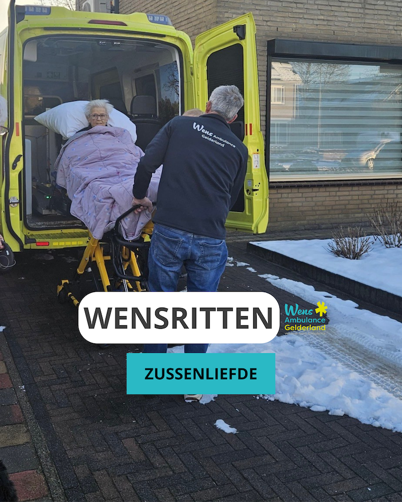 “Onze moeder lag in het ziekenhuis in Rijnstate Arnhem, en had nog een grote wens: aanwezig zijn bij de 80e verjaardag van haar zus die tevens al 57 jaar haar buurvrouw is. Dankzij de WensAmbulance Gelderland werd die wens in korte tijd geregeld, iets waar wij erg dankbaar voor zijn.